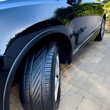 Next, we perform a light paint correction to remove any marks or blemishes, followed by applying a premium ceramic coating to protect the paintwork, windows, and wheels. We also provide interior protection, ensuring your car stays pristine inside and out.